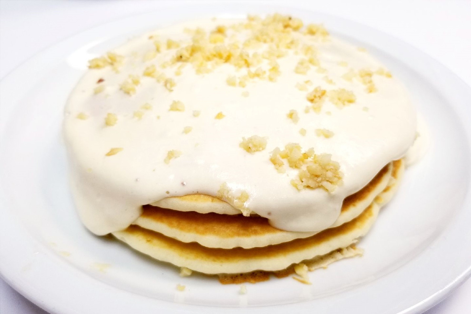 生地が見えないくらいにたっぷりかかったマカデミアソースが名物の