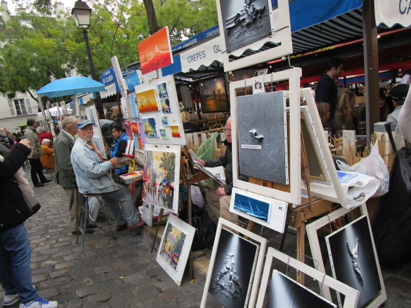 サクレクール寺院を見学した後には、画家さん達がいる広場で画家さんから絵画を購入したり、ゴッホやピカソ等の絵画のモデルになった風車やユトリロの絵画のメゾンローズやら壁抜け男、ピカソのアトリエや住んでいた場所確認、アメリ―の舞台、ジュテームの壁等・・・
