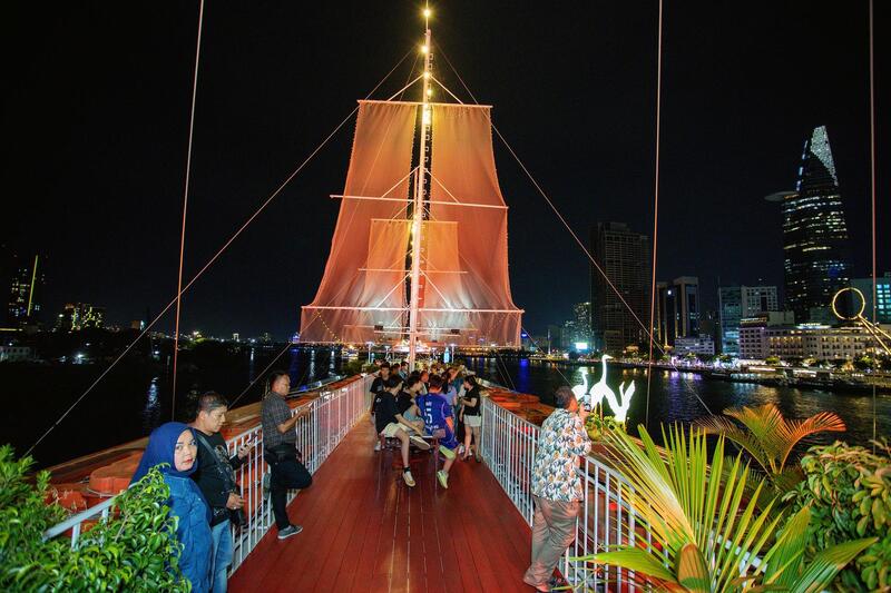 サイゴンプリンセス号で華麗な夜クルーズ!伝統人形劇と夜景を満喫。
