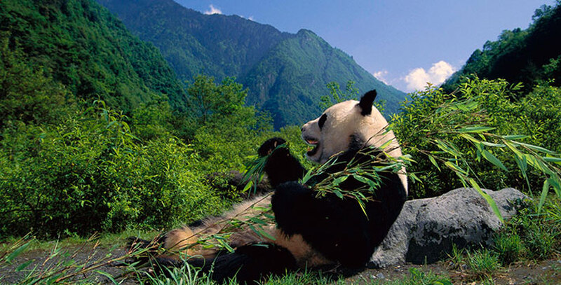成都市より約130㎞離れた四川臥龍パンダ保護センター(四川臥龍中華大熊猫苑)は、2006年に世界遺産に登録された四川ジャイアントパンダ保護区の一つ、臥龍自然保護区にあります。パンダの故郷またはパンダの楽園と呼ばれる当センターではパンダの観察、パンダの生息地で散策.パンダの飼育ボランティアや写真撮影かできます。一帯には5,000種以上の植物が自生。1日に10kg以上もの竹を食べるパンダにとって、最後の楽園ともいえる世界でも豊かな地域です。