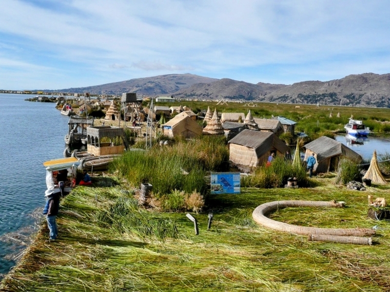 プーノ到着後は湖畔に宿泊し、翌日は葦で造られた浮島ウロス島を訪問。トトラボート乗船体験を通じて、今も続く先住民の暮らしに触れる貴重な時間をお過ごしください。標高3,800mに広がる青い湖と空が織りなす絶景はまさに圧巻。