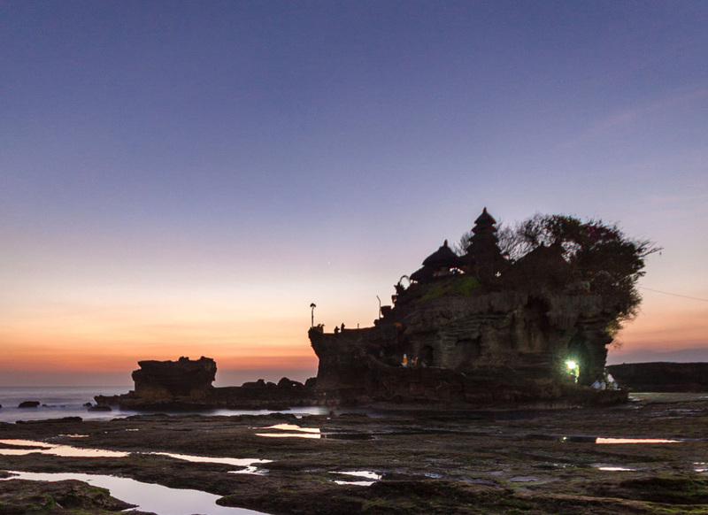 夕映えに輝く海と空、際立った美しさを見せるタナロット寺院に感動!