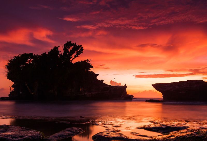 インド洋に沈む夕日をバックに浮かび上がる『タナロット寺院』