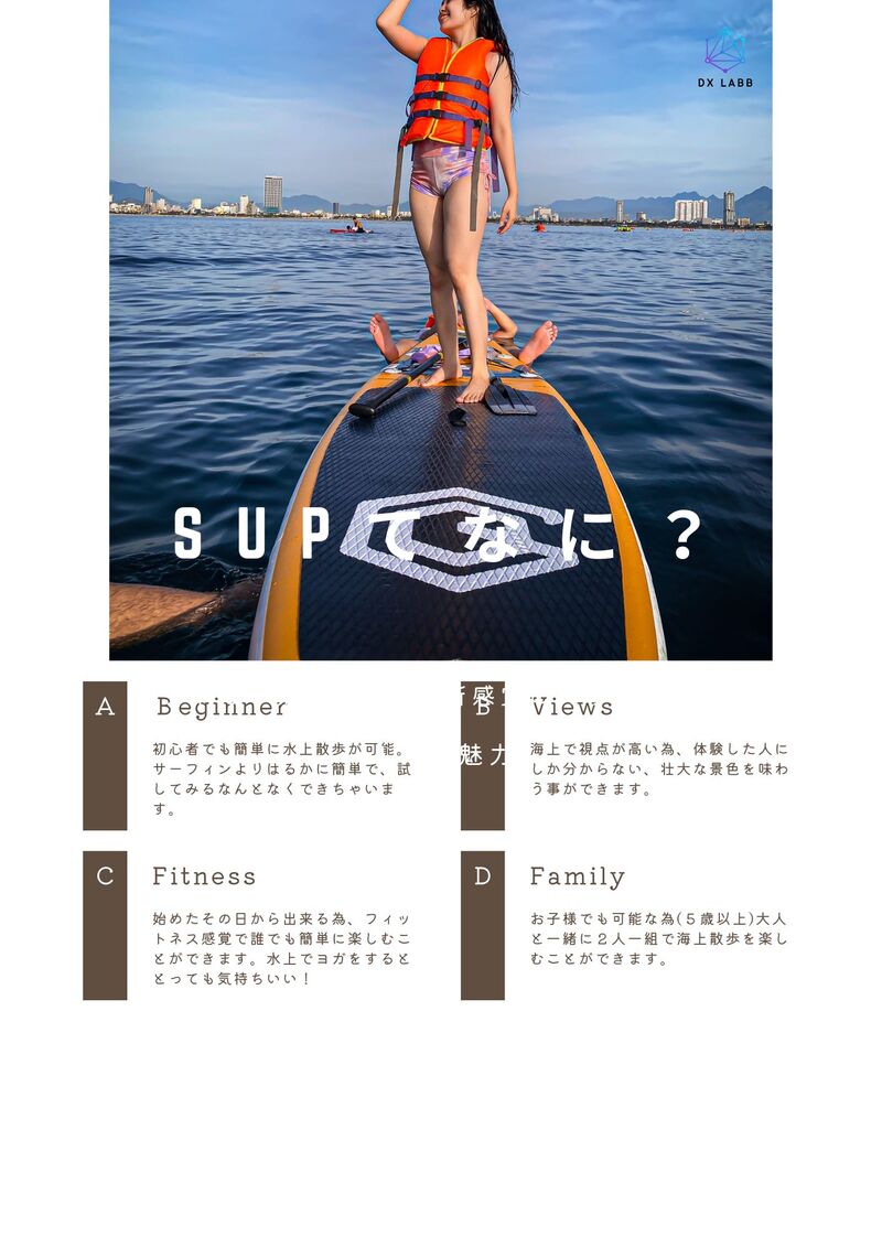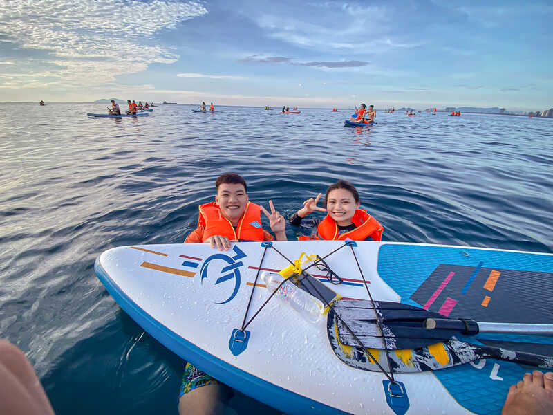 水上スポーツの新定番SUPをダナンのビーチで楽しみませんか?SUPとはStand Up Paddle Board(スタンドアップパドルボード)の頭文字をとったもので、ボードの上に立ち、パドルを漕いで水面を進んでいく新感覚のアクティビティです。ライフジャケットやシュノーケリングを装備して、インストラクターからSUPの講習を受けます。初心者でも十分に楽しめますが、マリンスポーツなので体調の悪い方や全く泳げない方にはお勧めできません。水上をゆっくりと漕ぎながら近くの島で海上散歩やシュノーケリングをお楽しみください。ディナーはベトナムのトップ80レストランに選ばれる美味しい「マダムラン」に向かいます。
