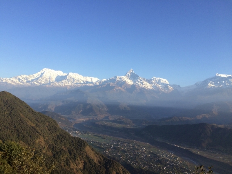 カトマンズより西へ200㌔、飛行機で30分、乗用車で7-8時間の場所にあるのが、ネパール第2の都市で風光明媚なリゾート地ポカラです。「ポカラ」はネパール語の「ポカリ」(湖)という言葉に由来し、アンナプルナ連峰を水源とするフェワ湖、ベグナス湖、ルパ湖等の美しい湖が点在します。カトマンズより標高が低く、やや温暖で、対峙する山々は8,000m級ですので、眼前に迫る雄大な山の姿はまさに絶景です。壮大なヒマラヤ山脈を照らす朝日や夕日鑑賞は一生に一度は観るべき価値があります。
