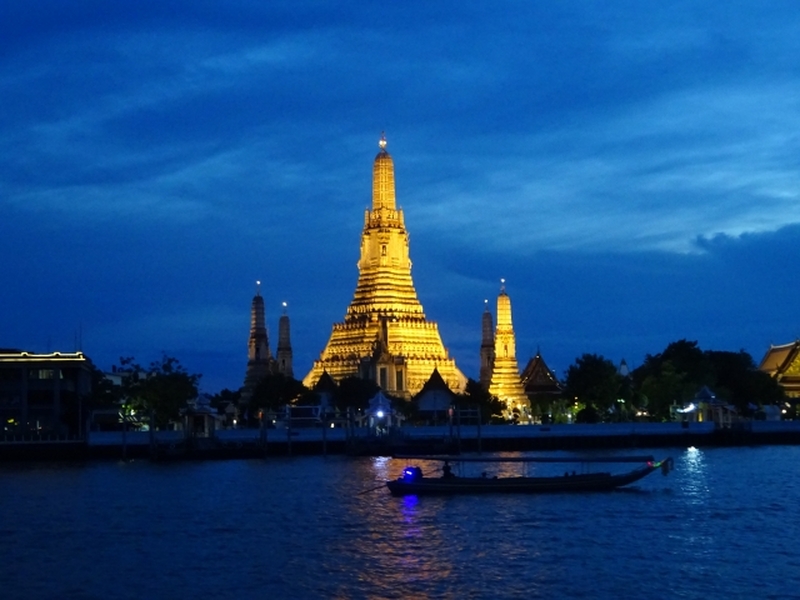 運河が発達し、その昔は「東洋のベニス」と呼ばれたバンコク。その中心を縦断するように流れるタイ最大の河川『チャオプラヤー川』には多くの観光船が運行されています。こちらのツアーでご案内させて頂く船は『グランドパール号』という高級感ある遊覧船です。また、夜にライトアップされた寺院ワット・アルンの幻想的な光景は必見です!ジャズの生演奏にタイ古典舞踊、豪華な食事。 お友達同士の他、カップルや夫婦でロマンチックなひと時を送りたい方にもおすすめです。船内中央ではディナービュッフェがあり、タイ料理をはじめ、洋食や日本食、果物・デザート、食後のコーヒー紅茶などが豊富に用意されております。